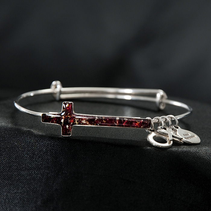 A twist on expandable bracelets that displays your flowers in a Sterling Silver Cross. A stylish way to display your remembrance flowers.