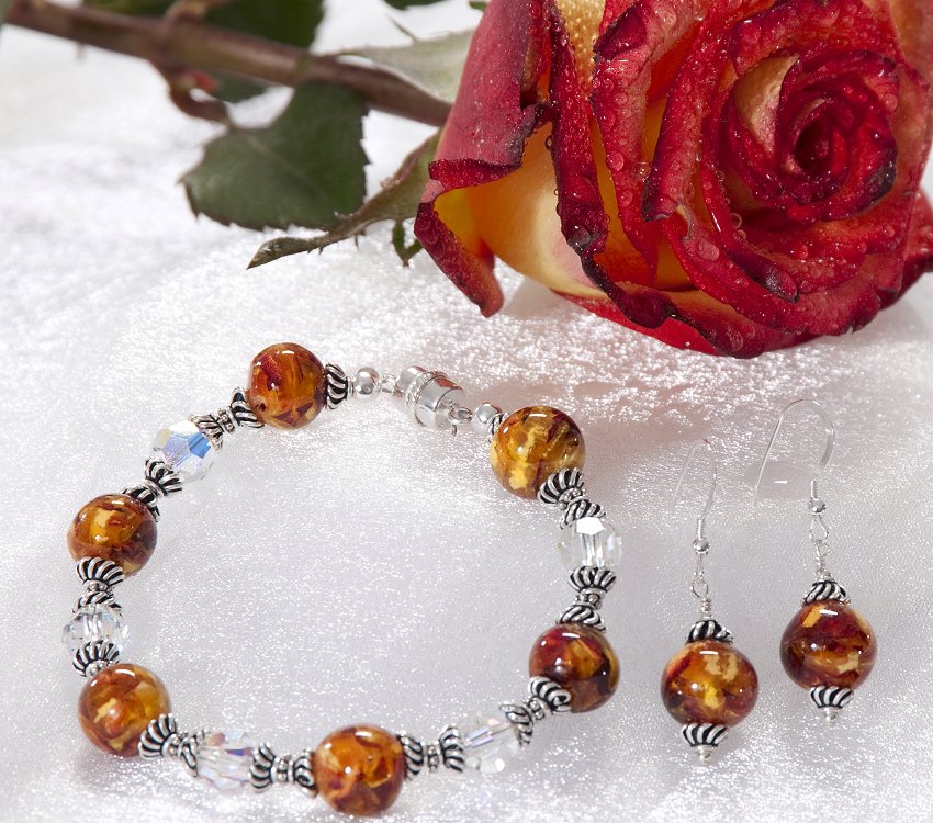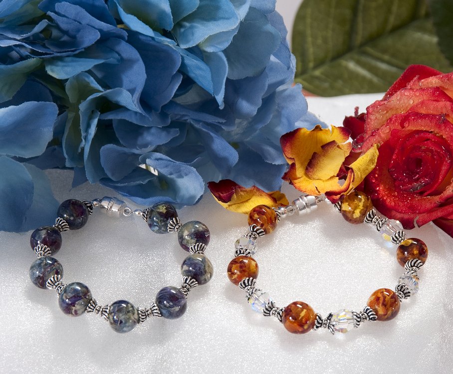 The “Flowers In Glass” Bracelet can be made with most any flower and makes a perfect remembrance. Made with Sterling Silver Metalwork and Sterling Silver Magnetic Closure. Available with or without Swarovski Crystal.