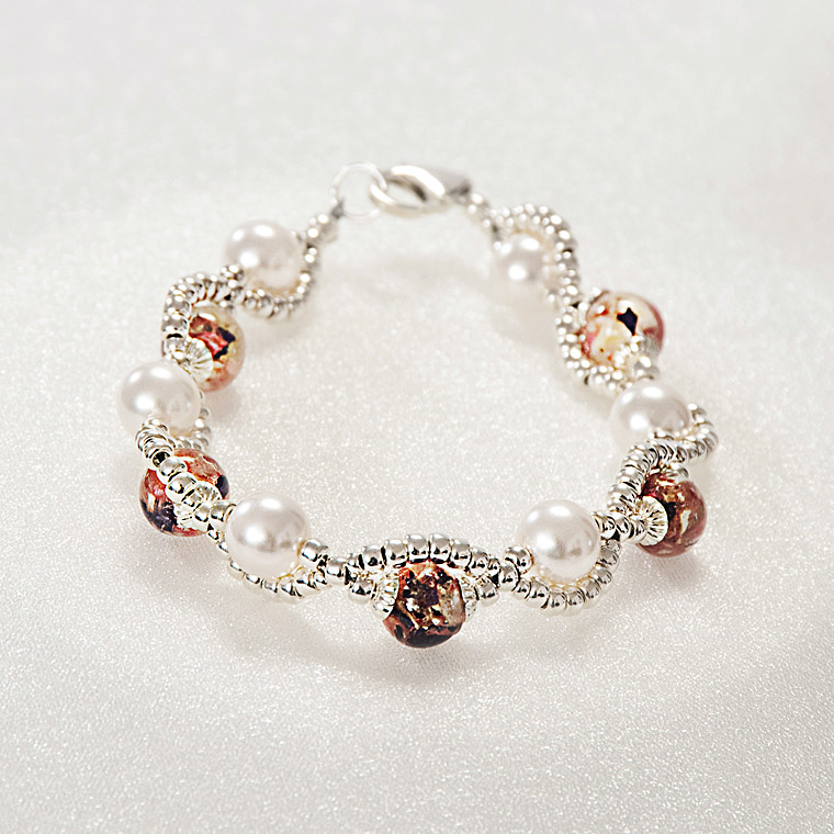 Utter sophistication! An elegant Pearl Bracelet combining Swarovski Pearls,”Flowers in Glass” beads, surrounded by Sterling Silver embellishments in an intricately woven bracelet. Each Glass bead contains your flowers from your special occasion. Combine with the Waves of Love Necklace for a unique remembrance set.