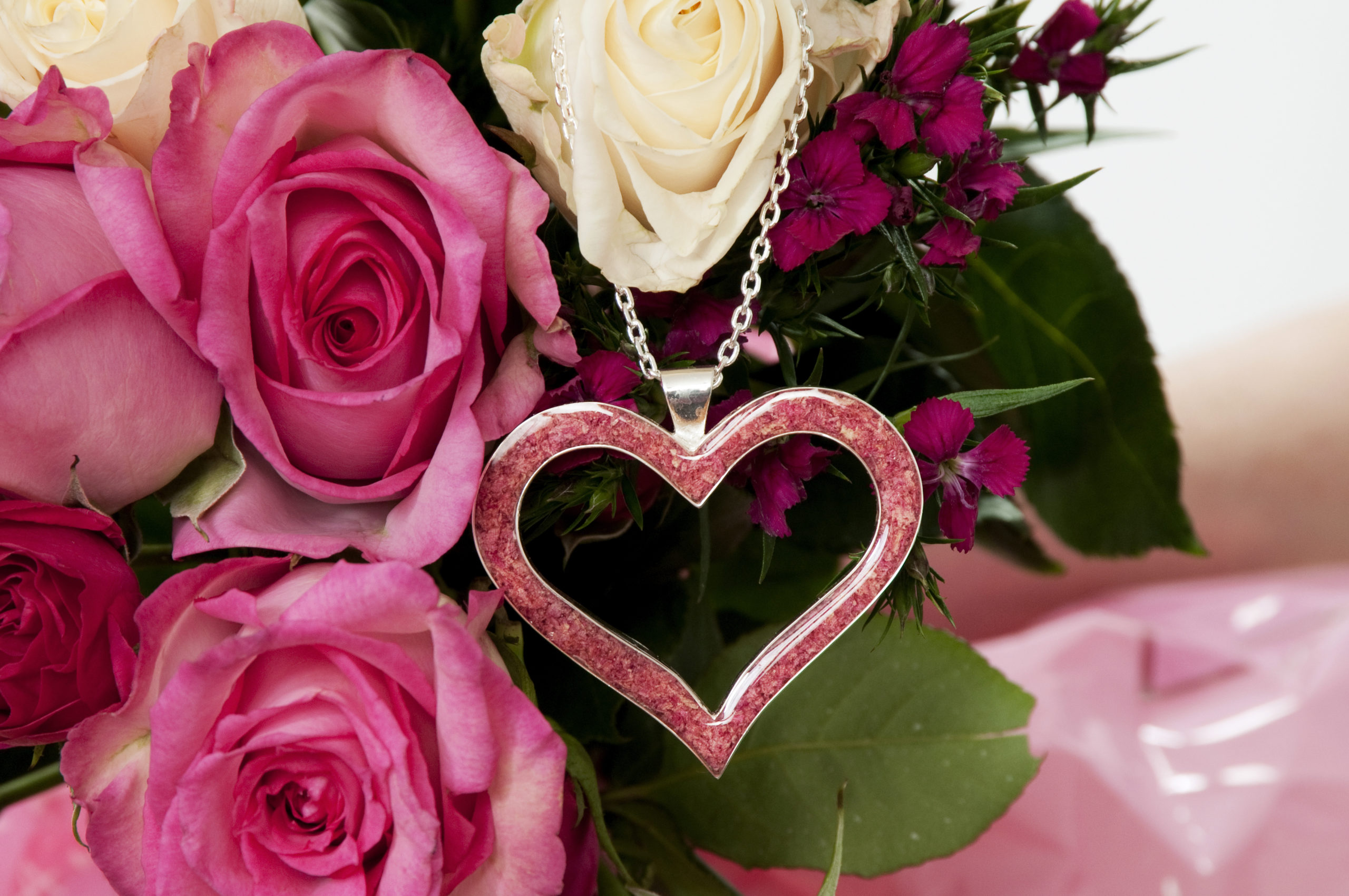 Display your flowers in this charming heart. The Hanging Heart is filled with your precious flower petals. This charming heart is designed to hang in the car rear view mirror but you can display it anywhere you like. Includes 6″ chain. Made with silver metal.