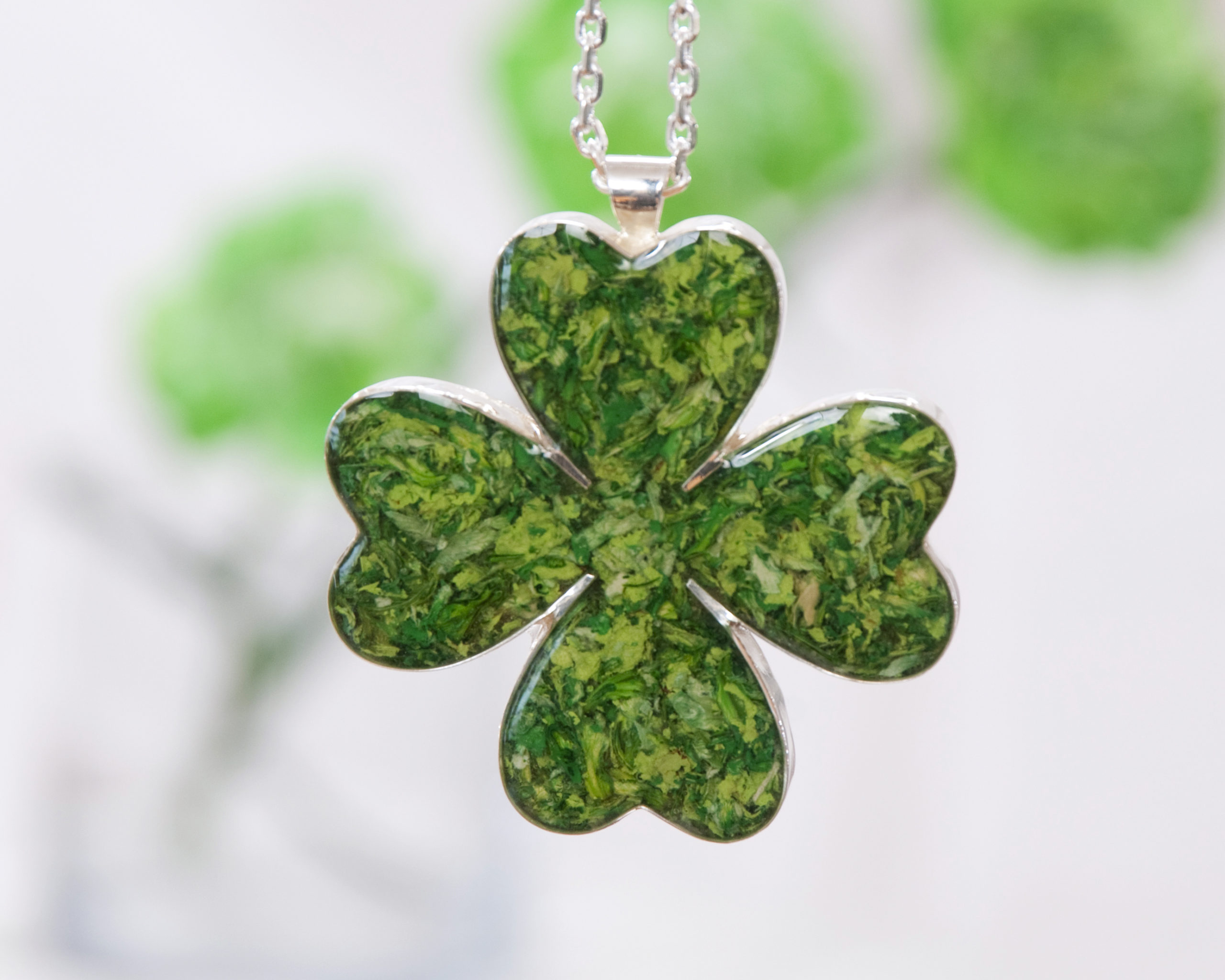 Irish Eyes are Smilin’. Shown here is our gorgeous silver metal Hanging Shamrock. This Irish emblem can be filled with your flower petals from a special occasion and is designed to hang in your car’s rear view mirror , but can be displayed anywhere. Proudly display your special flowers and honor your Irish heritage. Erin go Bragh!